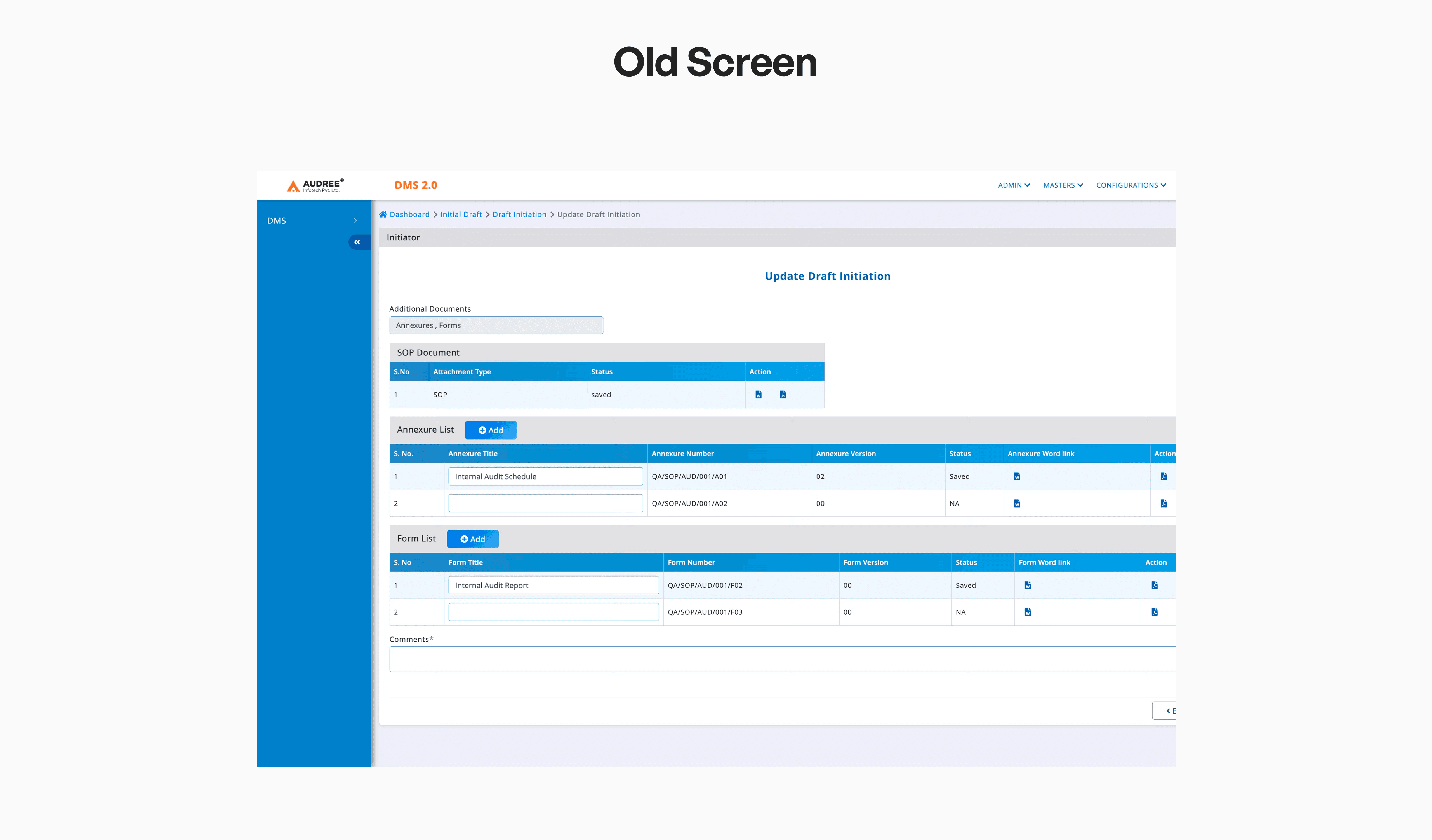 We simplified document handling by introducing tab-based navigation for each creation stage Initiation, Draft, and Final Approval. Earlier, users had to move between multiple pages with repetitive tables and duplicated data. Now, all stages are accessible in one view, improving traceability, reducing back-and-forth, and saving.