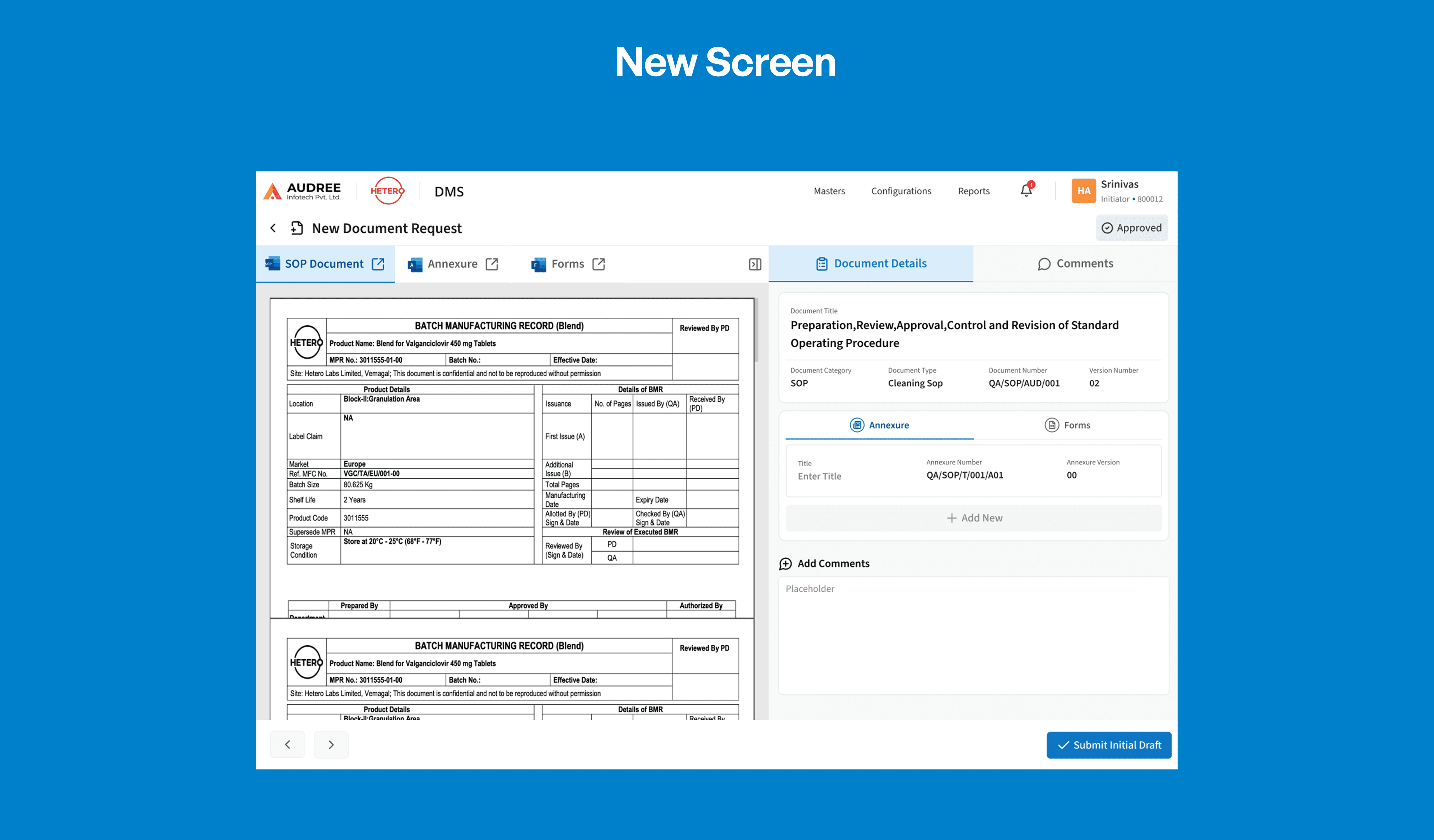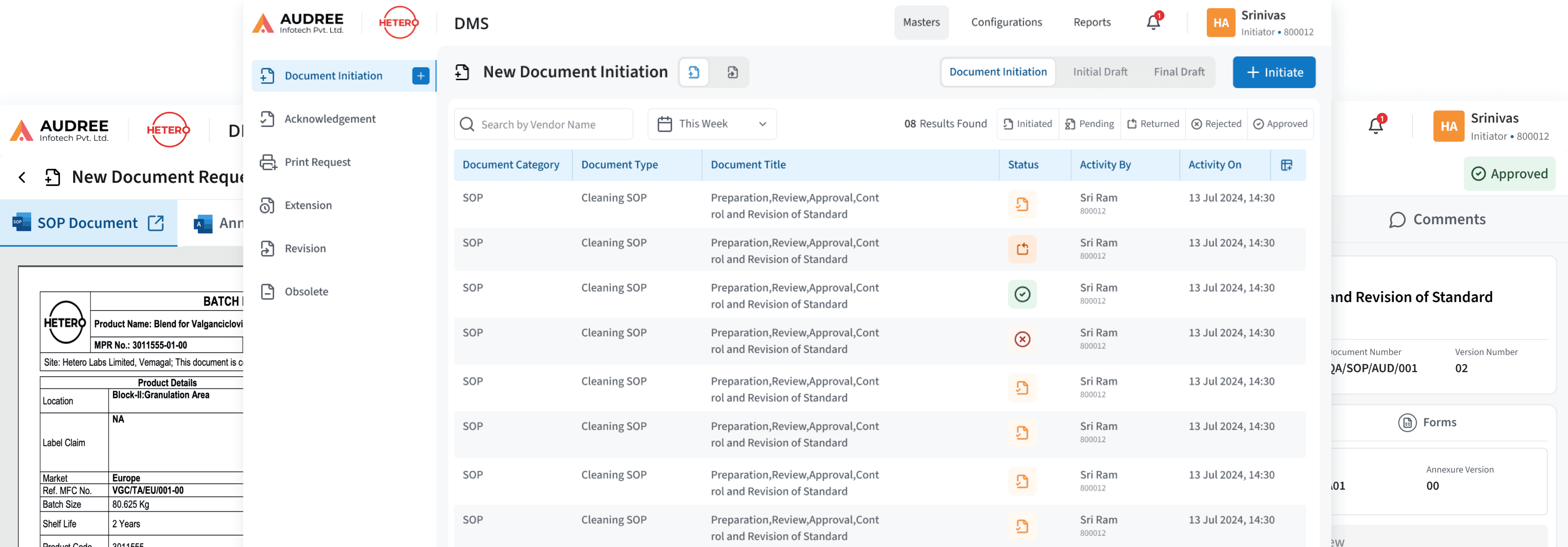 The redesign focused on improving visibility, reducing manual effort, and ensuring every document could be tracked and maintained with accuracy helping pharma teams operate with greater speed and confidence.
