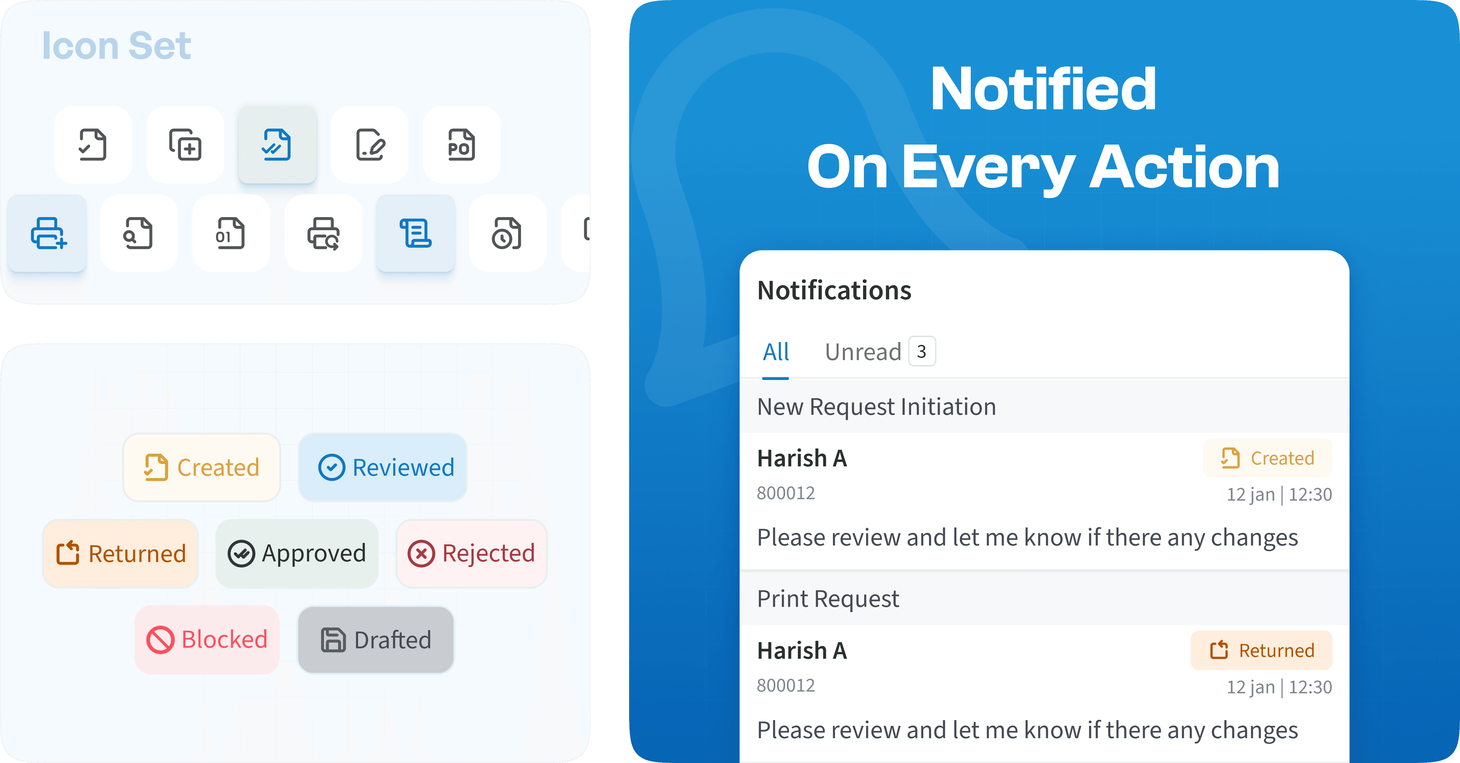 Smart notifications, color-coded statuses, and contextual prompts guide users seamlessly through each step, eliminating confusion and manual backtracking.