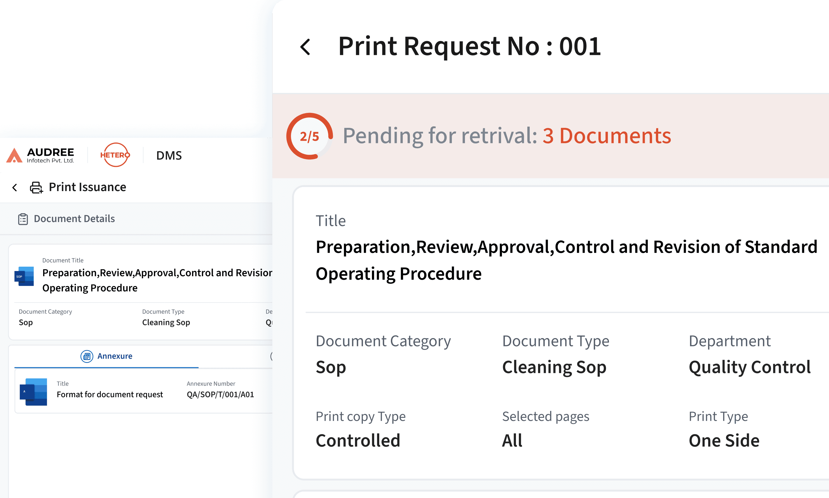 We redesigned the Print Issuance and Retrieval flow for speed and clarity. Users can now print only the required attachments, while color coded counts track document returns from each department. A tab-based layout keeps all print stages in one place, reducing back-and-forth navigation.