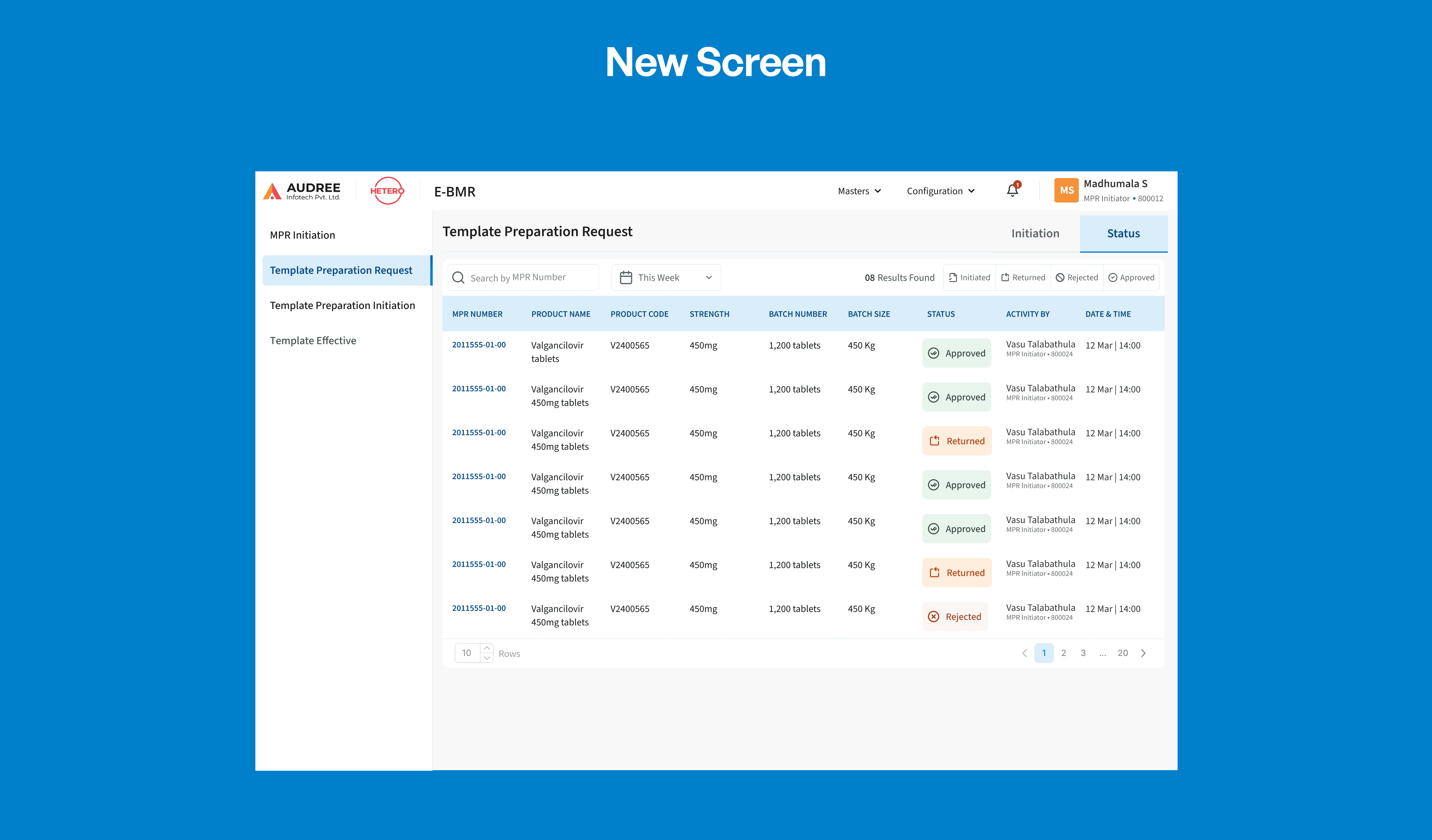 We refined the BMR creation module by aligning it with the new execution workflow and using real production feedback. Stages were streamlined and statuses clarified, making the creation-to-issuance flow more structured and better connected.