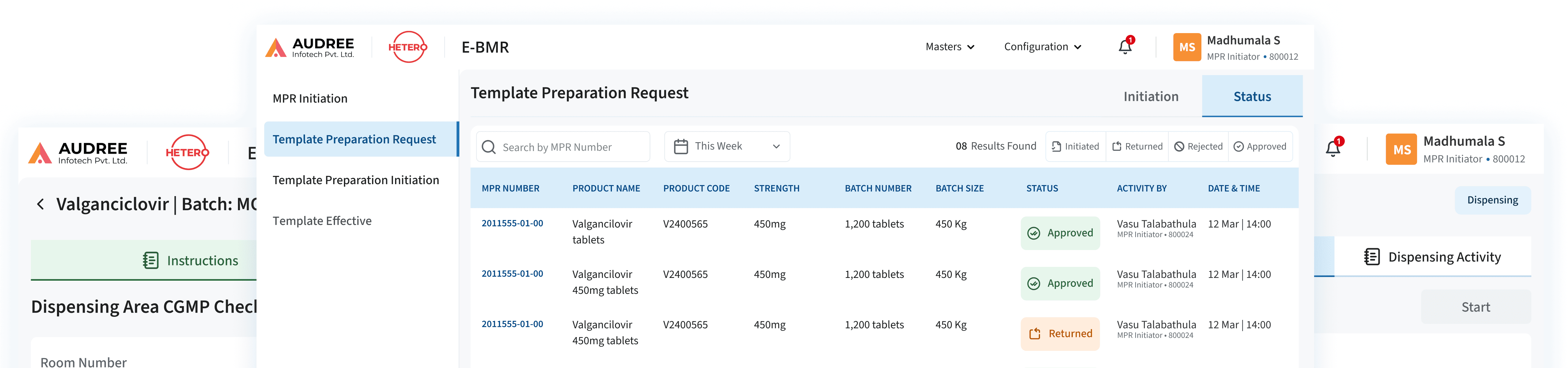 We digitised the entire shop-floor execution flow with guided steps, digital checklists, and real-time prompts that match actual manufacturing sequences. Paper logbooks and offline verification were replaced with actionable tasks, built-in validations, equipment mapping, and digital sign-offs all reducing errors and speeding up execution. role-based views, and instant QA visibility ensure smoother operations and faster batch closure.