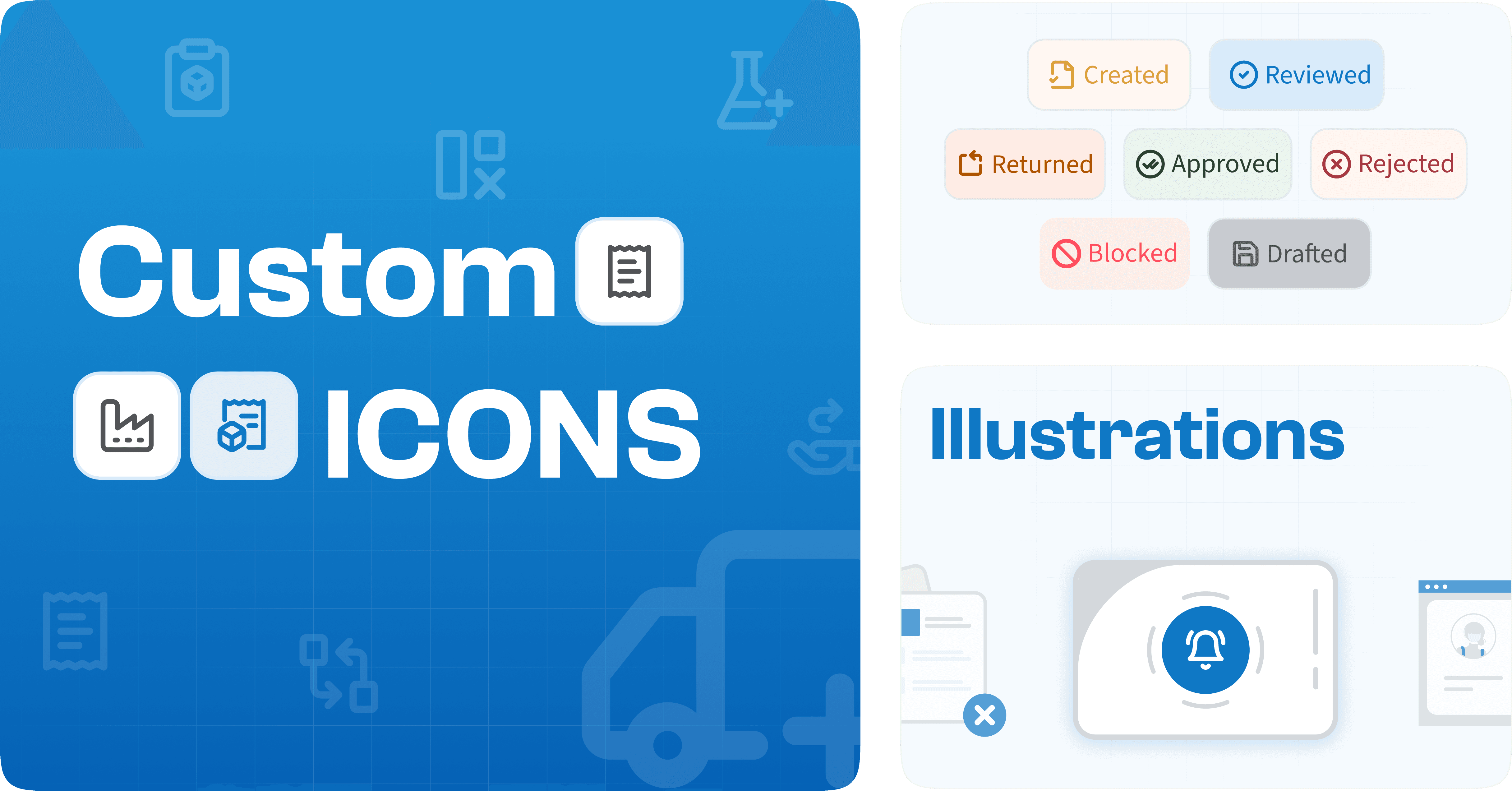 We created custom icons and illustrations tailored for pharma workflows making every status, action, and alert instantly recognizable. This consistency across the suite enhances usability
