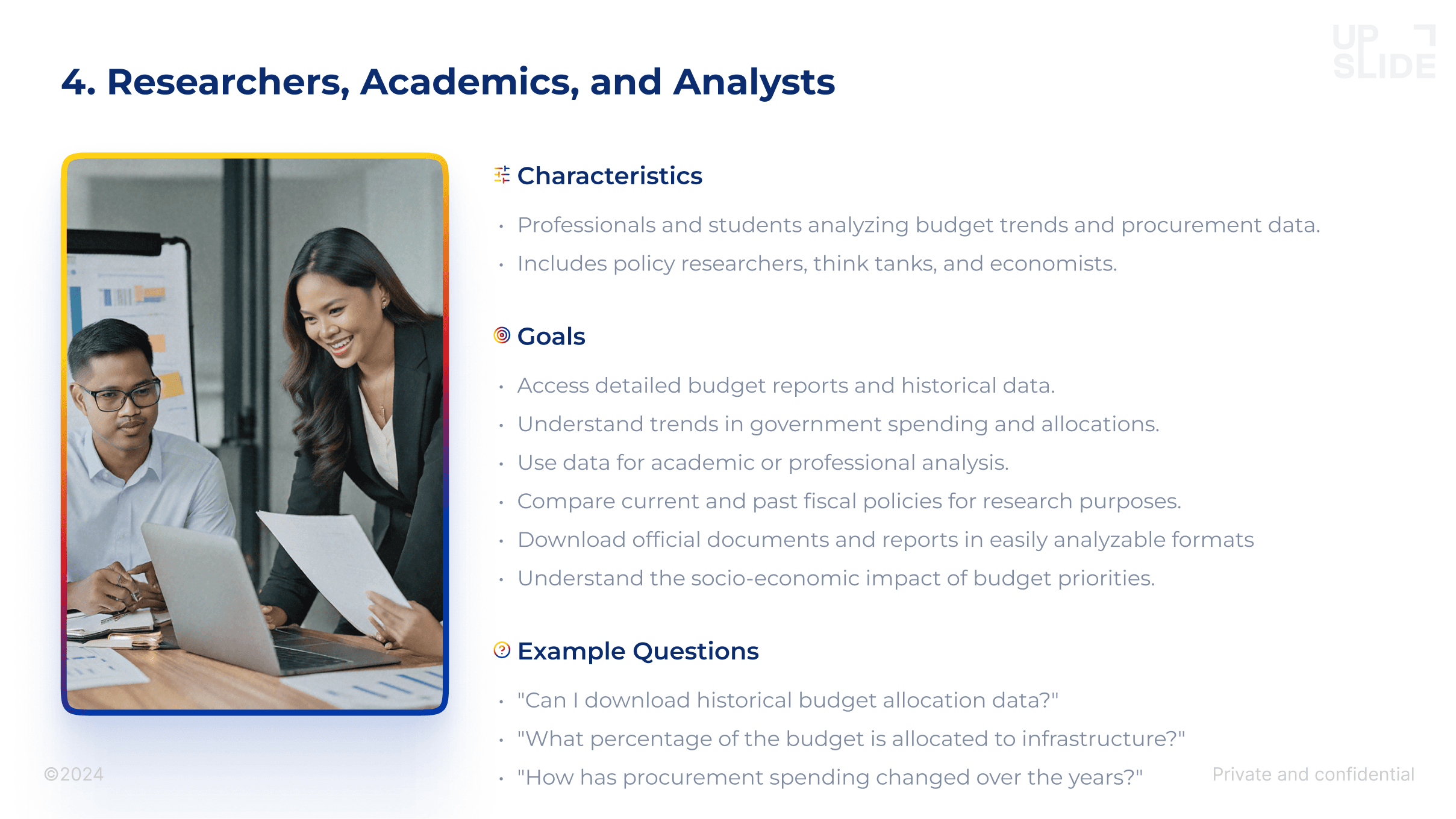 We began by identifying key user groups including citizens, government employees, and public officials and understanding their literacy levels, digital familiarity, and common budget-related questions. This helped us define how information should be structured, explained, and delivered conversationally.