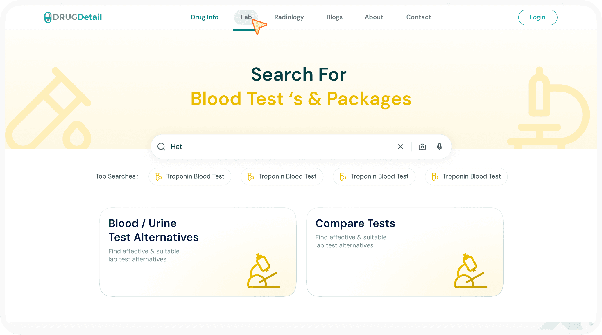 Search for Lab Tests, find Alternative tests & Compare multiple test at one place.