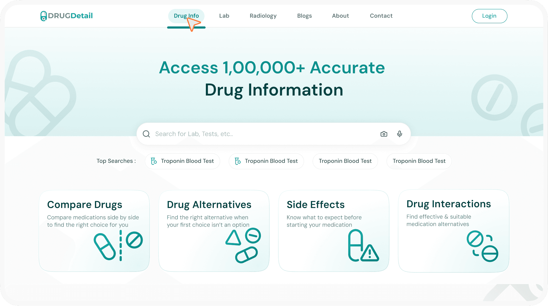 Each card shows key info on drugs and tests, helping you find what you need faster.