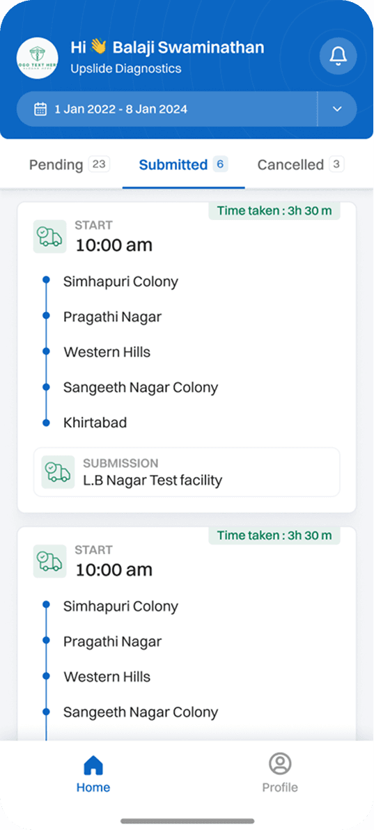 We mapped Logistics end-to-end pickup workflows to understand daily field operations and identify delays. This helped reduce manual coordination and streamline trip assignment, route execution, packet collection, proof capture, and delivery. The result ensured full traceability, faster execution, and reliable sample movement across diagnostic operations.