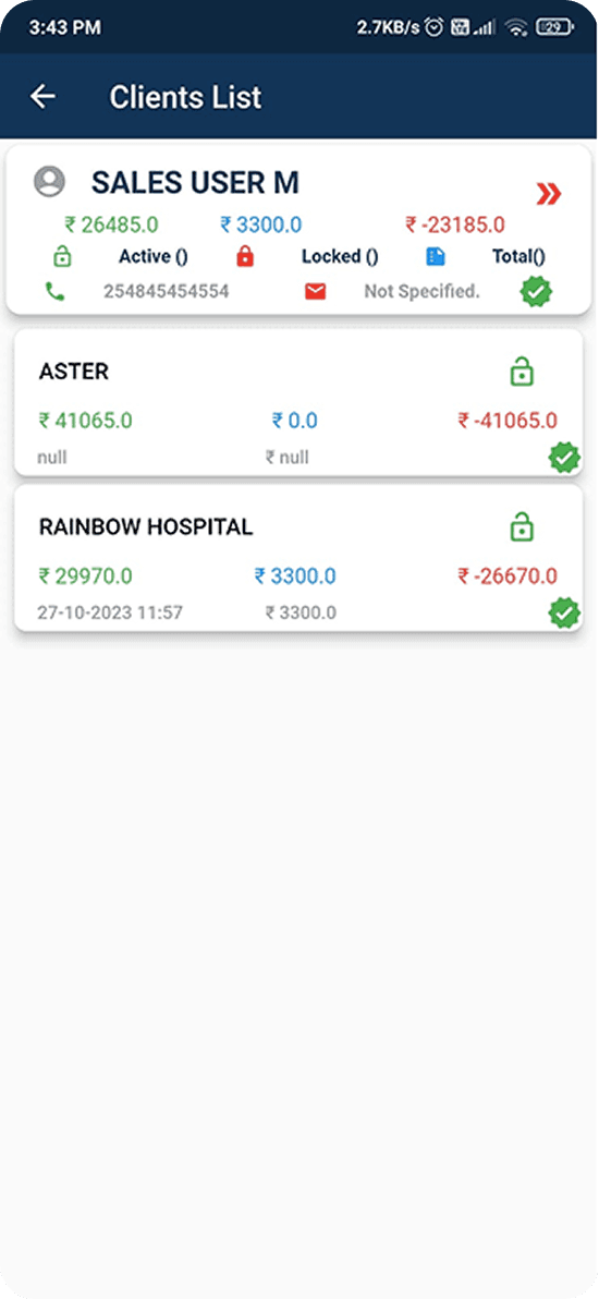 My Lab Sales is Suvarna’s mobile CRM application built for sales teams to track client-wise business, credit limits, growth trends, and real-time sales performance efficiently.