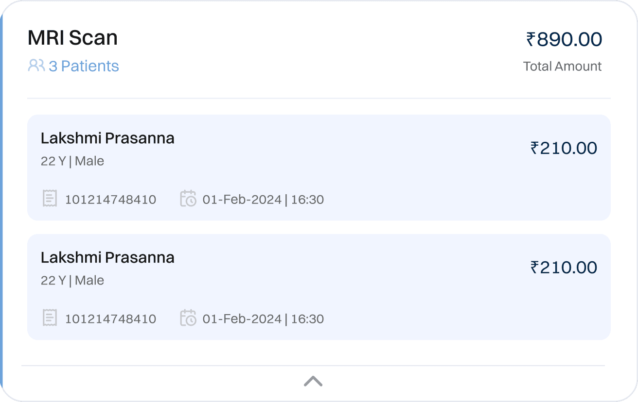We redesigned the card to group tests by type, clearly list patients, prices, and totals, enabling faster review and billing clarity.
