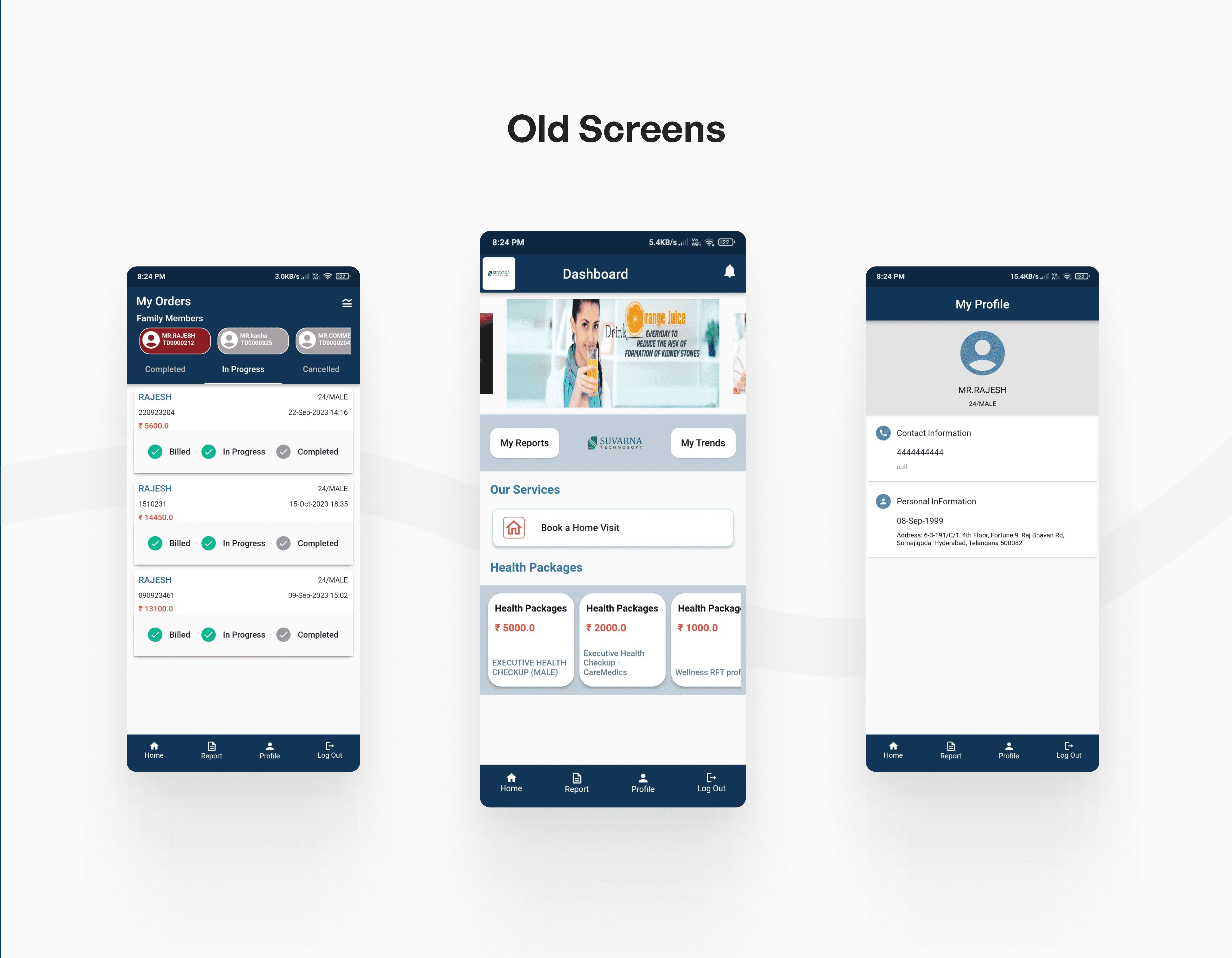 Over time, the app became hard to use due to scattered actions, unclear flows, and inconsistent information. Core tasks like booking tests or viewing reports required multiple steps, frustrating users and support teams.